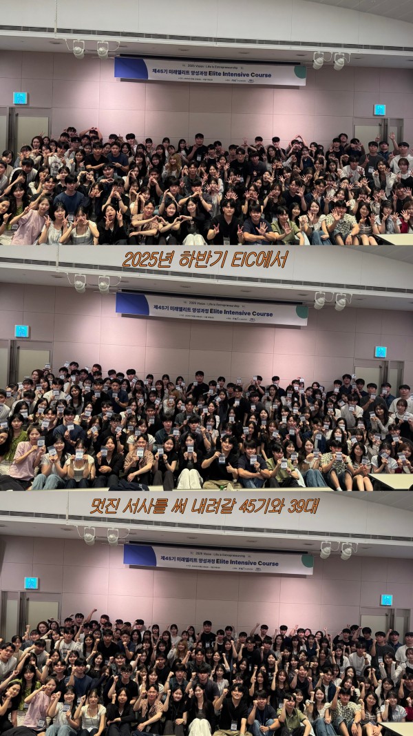 첫 면접 때 너무 긴장한 나머지 횡설수설했던 기억이 아직도 남아있다. 그럼에도 운 좋게 합격해 2025년을 뜻깊게 마무리할 기회를 얻었다는 점에서 감사한 마음이 컸다. 입학식 때 들었던 과제 양식으로, 각 교시 강연을 1,000자 이상 과제를 작성해야 한다는 부분에 처음에 놀랐던 기억이 생생하다. 평소 글쓰기 경험이 부족해 첫 과제를 살폈을 때, 가독성과 논리가 많이 부족했었는데 EIC에서 매주 과제를 하면서 개선되는 것을 느낄 수 있었다.